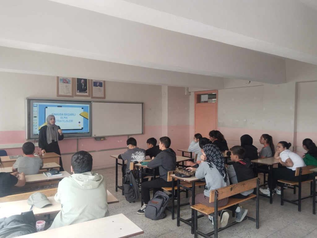 Okul Psikolojik Danışmanı Fatma ÜNAL tarafından 8.Sınıf öğrencilerimize yönelik Lise Türleri ve Sınav Başarılı Olma Stratejileri semineri verildi.